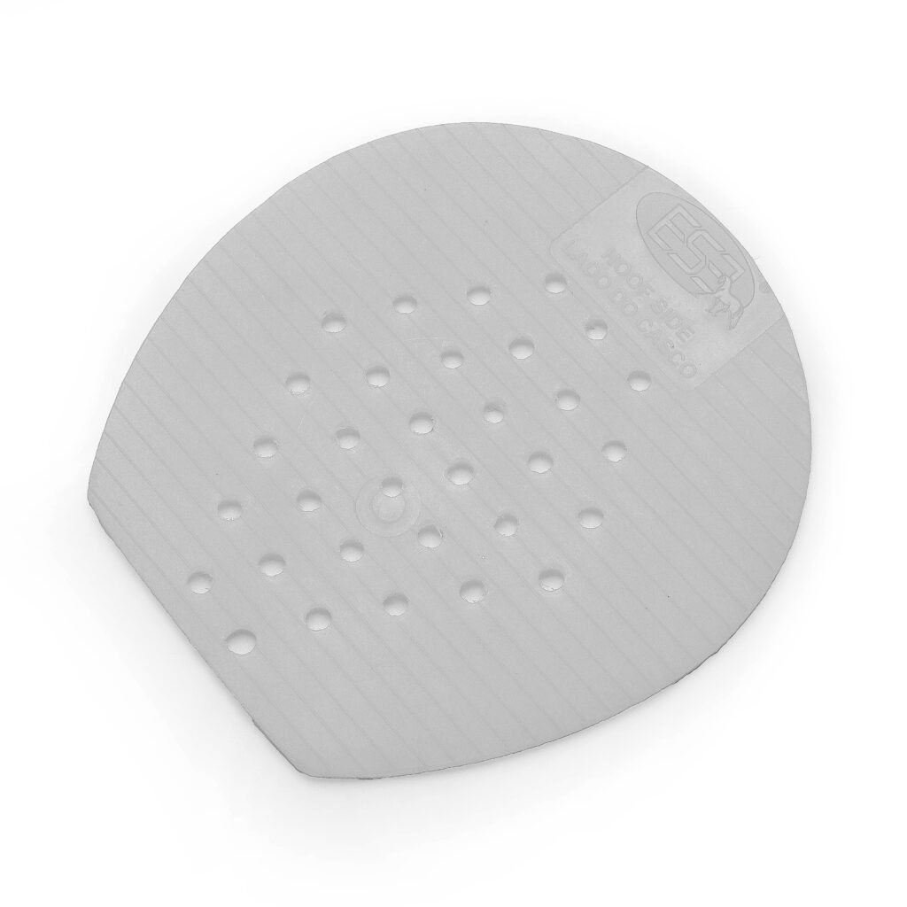Essa palmilha oferece um suporte gradual na região da ranilha, redistribuindo o peso do cavalo de forma uniforme sobre toda a sola e ranilha, reduzindo a sobrecarga na muralha do casco.