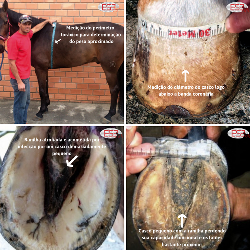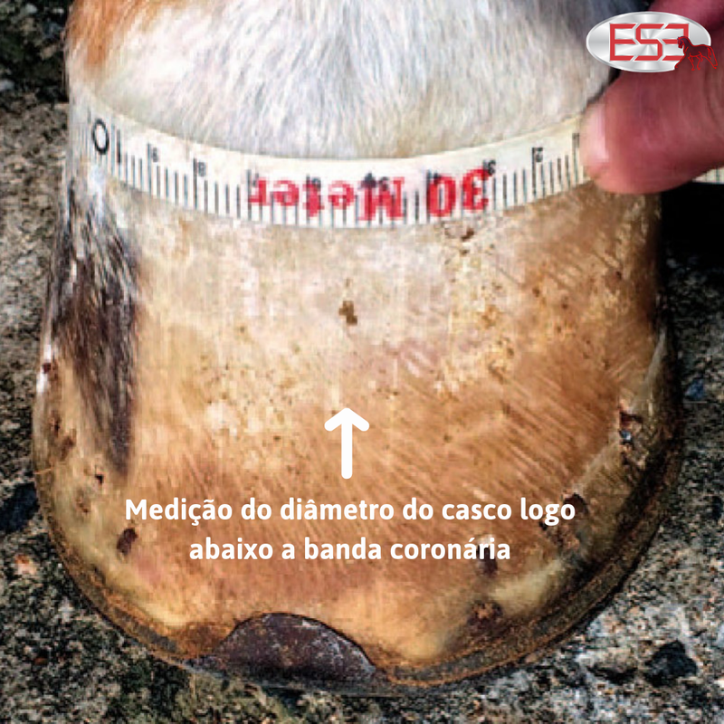 A medida do tamanho da circunferência do casco deve ser tomada logo abaixo da banda coronária (coroa) e o peso do cava-lo pode ser medido através das fitas de medição do perímetro torácico. Se o resultado obtido for superior a 78 libras por polegada o casco é considerado pequeno.