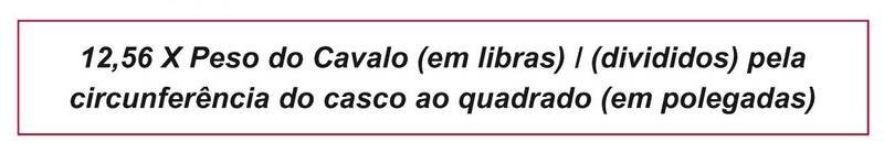 O peso do cavalo deve ser medido em libras e a circunferência do casco em polegada, sendo: