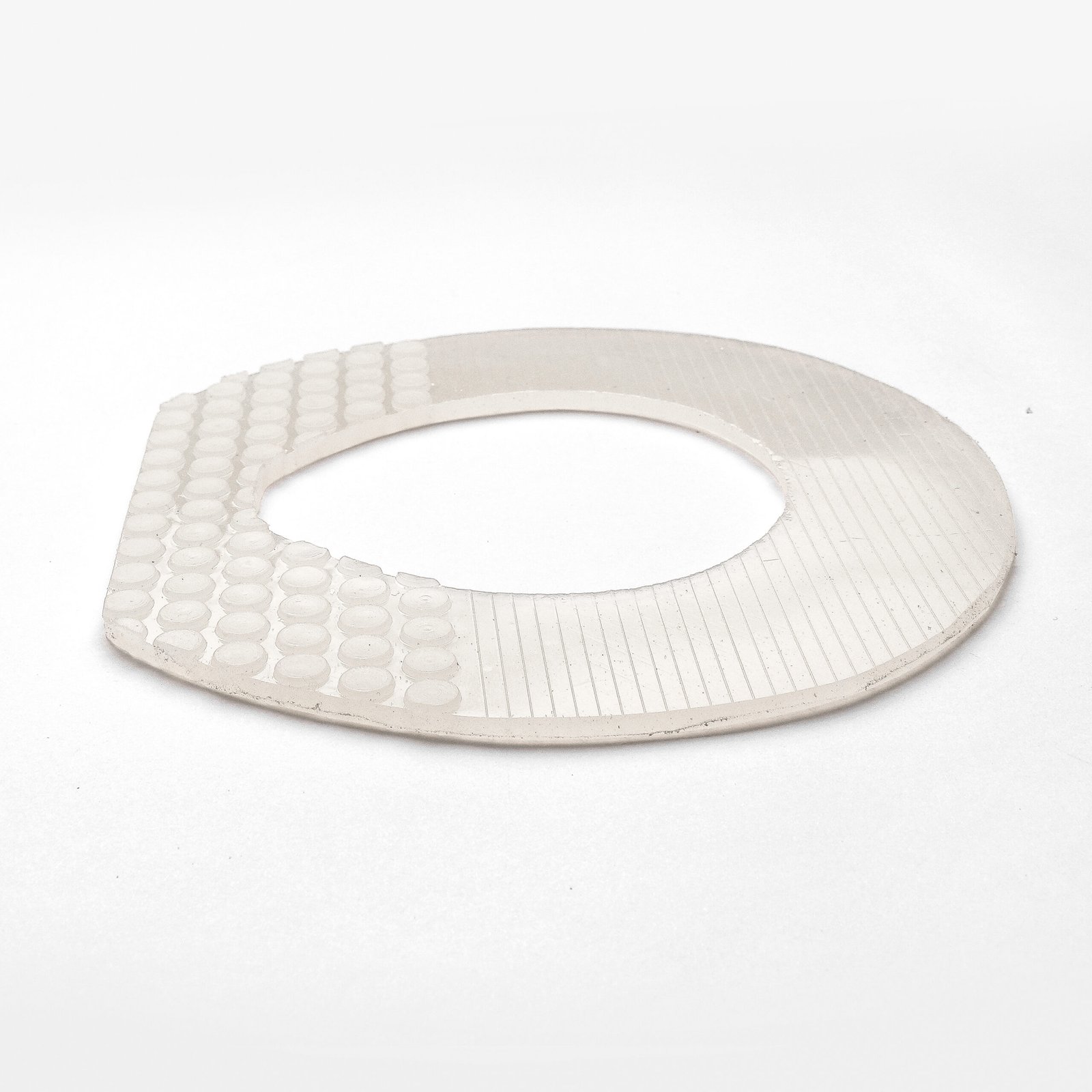 • As perfurações funcionam como microzonas de dissipação, redistribuindo as forças de impacto na sola e reduzindo a pressão direta sobre a ranilha.